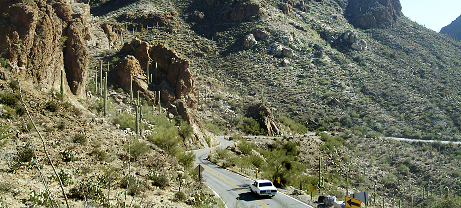 Gates Pass takes visitors over the mountains from the city and into the Western parks.